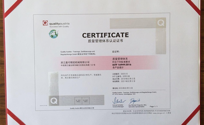 • The company was established on August 10, 2017. It is located at No. 176, Gaoxin East Road, Tongxiang Economic Development Zone (Fengming Street), Tongxiang City, Jiaxing City, Zhejiang Province. There are: R&D center building, machining workshop, assembly workshop, die-casting workshop, new energy vehicle powertrain research institute/test center, staff apartments, etc.), with a total investment of 1.2 billion yuan, and built according to the industry 4.0 standard. National level 2019 04Major science and technology special demonstration project - "new energy integrated electric drive assembly digital production line (2 automatic shell processing lines and 4 automatic assembly lines)", which can provide customers with an annual integrated electric drive system (total production capacity of 300,000 units (sets), 200,000 units (sets) of single-pole transmissions, and 400,000 units of casing machining. Put into production in August 2020, it is a development-oriented enterprise focusing on series products such as new energy vehicle transmissions and three-in-one powertrains. It has a R&D team composed of senior talents, Japanese overseas engineers, experts and engineering technicians. As of March 2021, it holds 74 globally valid authorized patents, and has reported 24 patents under review in China, Europe, the United States, and Japan. In 2017, it was approved to establish a "Provincial High-tech Enterprise Research and Development Center", and in 2018, it passed the "GB/T29490-2013 Intellectual Property Management System Standard" certification. Passed the CERTIFICATE quality management system certification. Strictly implement IATF16949:2016, ISO9001:2015, ISO45001:2018 standards in quality control, actively create a quality/environmental/occupational health and safety management system, implement 5S, general SOS and lean production management, implement QC/T1022 standards, and ensure safety , environmental protection and clean production are the top priorities, the management system is perfect, and the implementation is powerful.